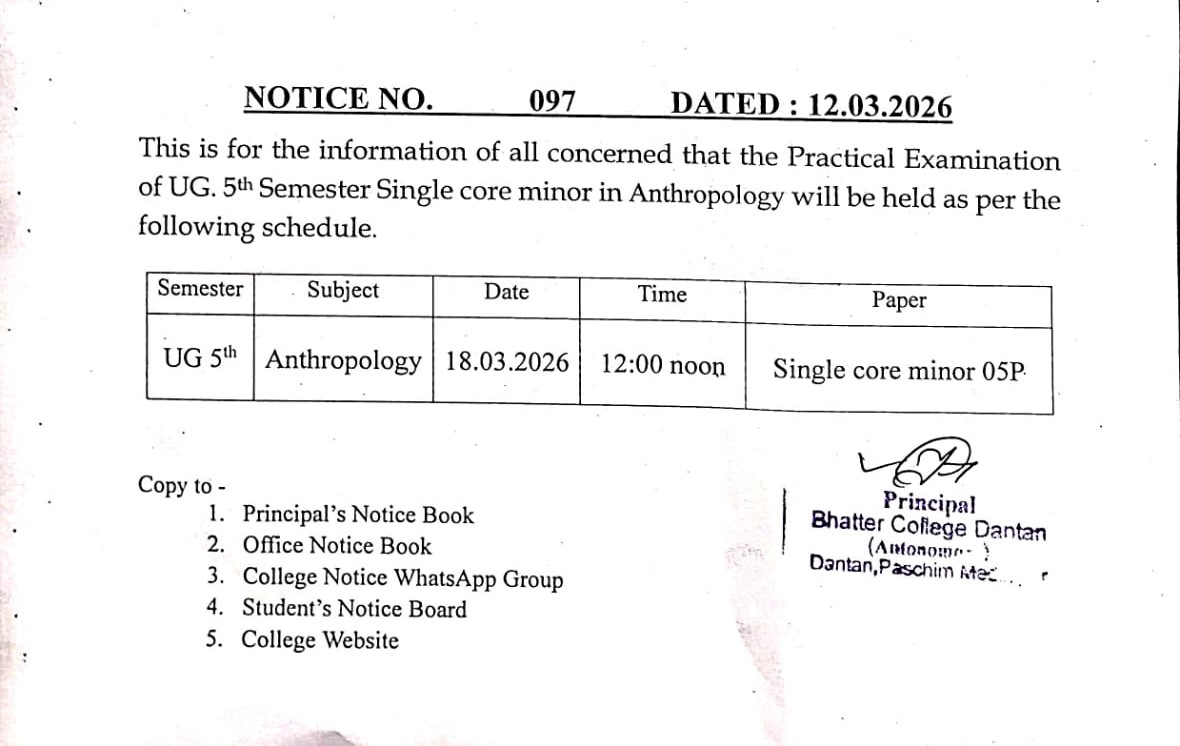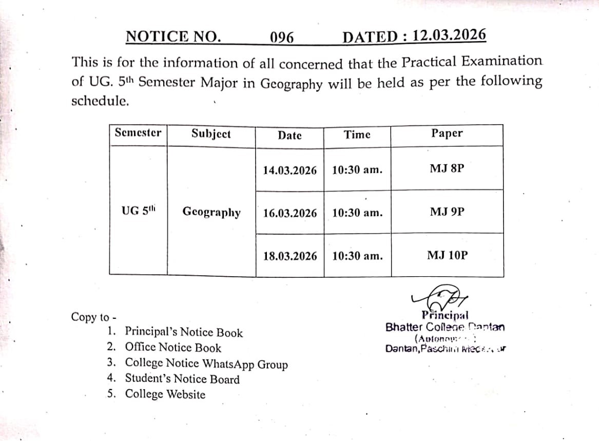 Practical Examination Schedule of UG 5th Semester (Regular) of Geography & Anthropology Geography Anthropology