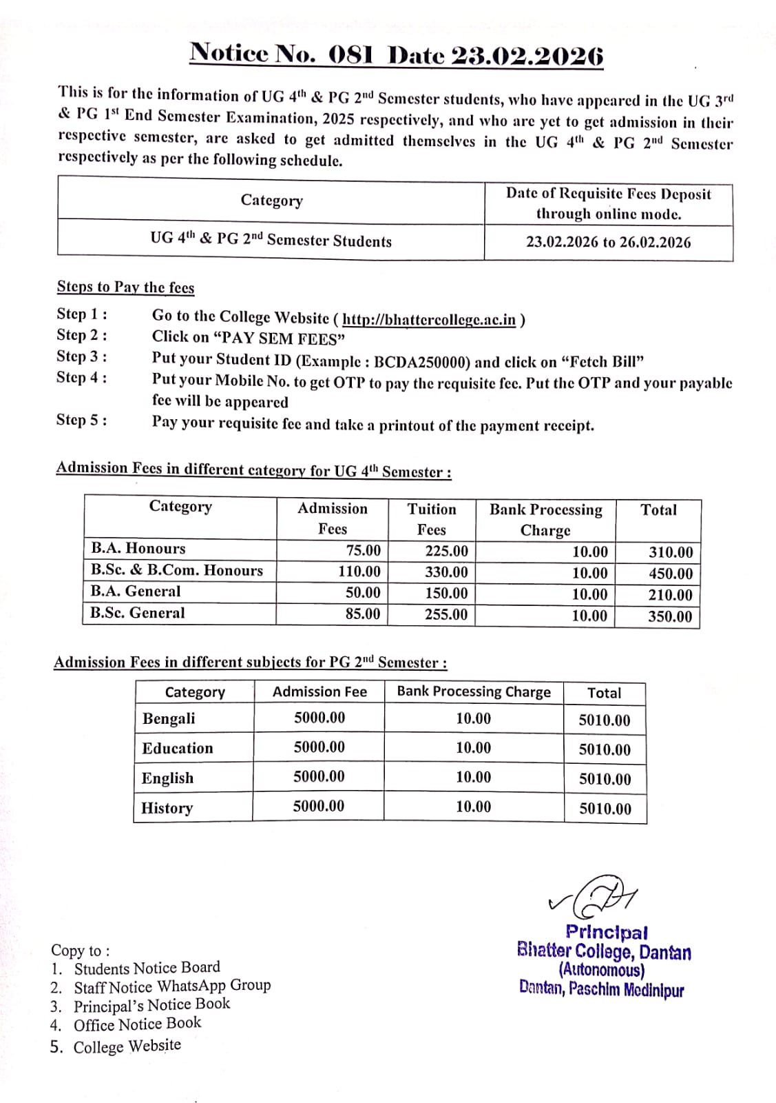 UG 4th Semester & PG 2nd Semester Admission Notification
